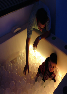 Las albercas de pelotas iris son ideales para el trabajo de terapia vestibular. Al momento que el paciente interactúa con la alberca de pelotas puede recibir sonidos y vibraciones. Cambia de manera aleatoria los colores.