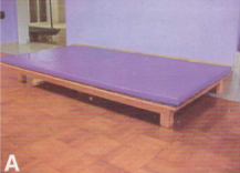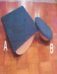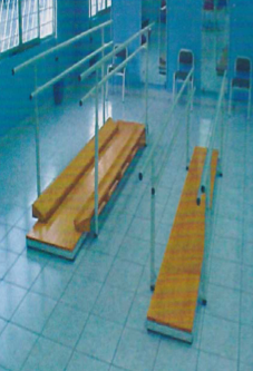 Para practicar marcha en equilibrio. Fabricado con hule espuma de alta densidad, forrado con lona plástica, resistente por su construcción de nylon. Diferentes modelos como: A)Replegado. B)Extendido.