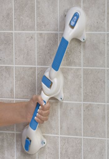 Se puede acoplar a cualquier superficie no porosa para evitar resbalones o caídas. para fijar las barras a la superficie de la pared, empuje hacia abajo las palancas y levante las palancas hacia arriba para retirarlas de la superficie de la pared.