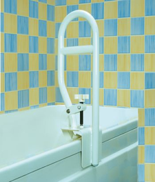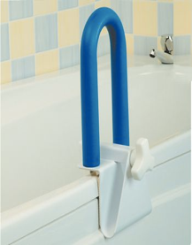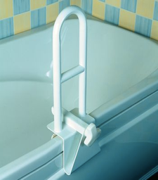 Proporciona un mango firme al lado del baño , y ayuda a dar confianza y estabilidad al entrar y salir de la bañera. La borda de acero revestido se fija al lado de la bañera por una abrazadera de acero inoxidable , acolchado interior con almohadillas de goma. Longitud de 45.72 cm . Abrazadera se ajusta a un ancho de 8.26 cm – 13.97 cm.