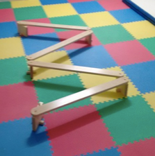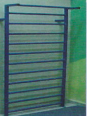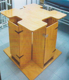 Implemento en cuyos brazos de apoyo pueden levantarse hacia una posición vertical y volver a su posición horizontal cuando así lo requiere. Cuenta con un mecanismo de seguridad para hacer al brazo de apoyo permanecer en posición vertical , además de un mecanismo de resorte el cual soporta el peso del brazo de apoyo al inclinarse hacia su posición horizontal. Soporta hasta 126 kg.