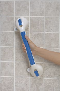"Fácil de montar y desmontar. Su cubierta proporciona mayor agarre y comodidad para manos delicadas. Altura sobre el lado del baño de 26.67 cm. Abrazadera se ajusta a un ancho de 6.35 cm – 13.97 cm. "