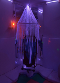 Paracaídas que envuelve el cuarto al colocarle en el techo , que lleva al centro una esfera de espejos giratoria que refleja las luces de la Sala Snoezelen de manera divertida. Además de ambientar el cuarto se usa para aumentar periodos de atención y para activar el seguimiento ocular y motor.