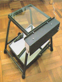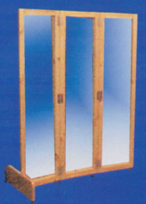 Para visualizar de frente y costados del paciente. Fabricado con vidrio grueso montado en un marco de madera con base de estructura de madera para mayor estabilidad y ruedas con freno.