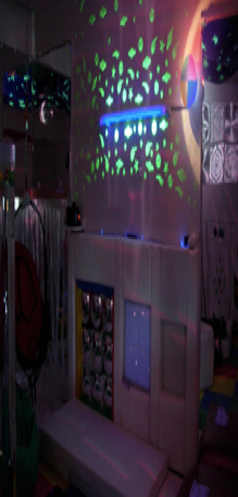 Proyecta 8 colores y 8 figuras distintas controladas a través de un Joystick. Los colores y las figuras son también controlados por el Cubo Mágico y otros controladores del cuarto. Ayuda a desarrollar habilidades de reconocimiento, de seguimiento y rastreo, ocular y motriz.