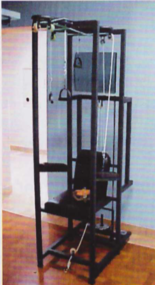 Fabricado en metal PTR con acabado en pintura electrostática horneada. Asiento y respaldo acojinados y forrados en vinil para la comodidad del paciente. Este equipo está conformado por juego de poleas, cables de nylon, pesas, mancuernas y tobilleras para practicar un gran número de ejercicios.