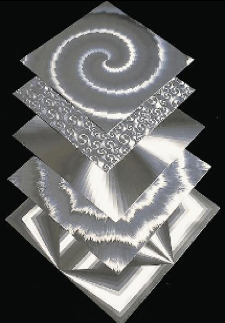 Conjunto de 10 paneles con cara de plata . Cada uno tiene un diseño diferente que refleja la luz en ángulos diferentes. Cada panel mide 42.5 cm2.