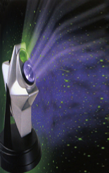 Proyector con tecnología holográfica para crear la sensación de espacio sideral, arrojando imágenes de estrellas y cúmulos espaciales. Este proyector llena cualquier espacio oscuro con un espectáculo de estrellas animadas y formación de nubes.