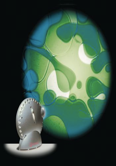 Proyecta una luz vibrante e intensa . Cuenta con 8 colores vibrantes al momento de funcionar y da la impresión de movimiento del agua. Aparato controlado a través del Cubo Mágico o cualquier controlador iris.
