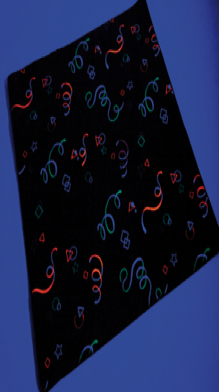 Alfombras de colores brillan con patrones fluorescentes brillantes bajo la luz negra. Seguro y apropiado para todas las edades. Conjunto de 5 incluye 1, Espectáculo, Razzle Dazzle, Space Voyage, Espacio Maze, y Ráfaga de color.